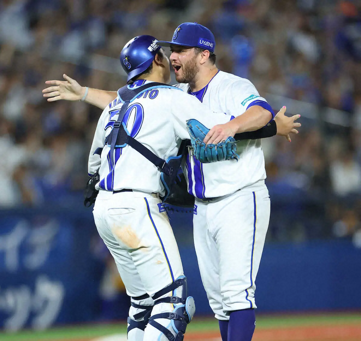 汗を滴らせ、来日2年目で最多の126球を投げ抜いた。DeNA・ケイが9回6安打無失点、初めての2桁11奪三振。メジャーでもなかった完封勝利で9勝目を挙げた。