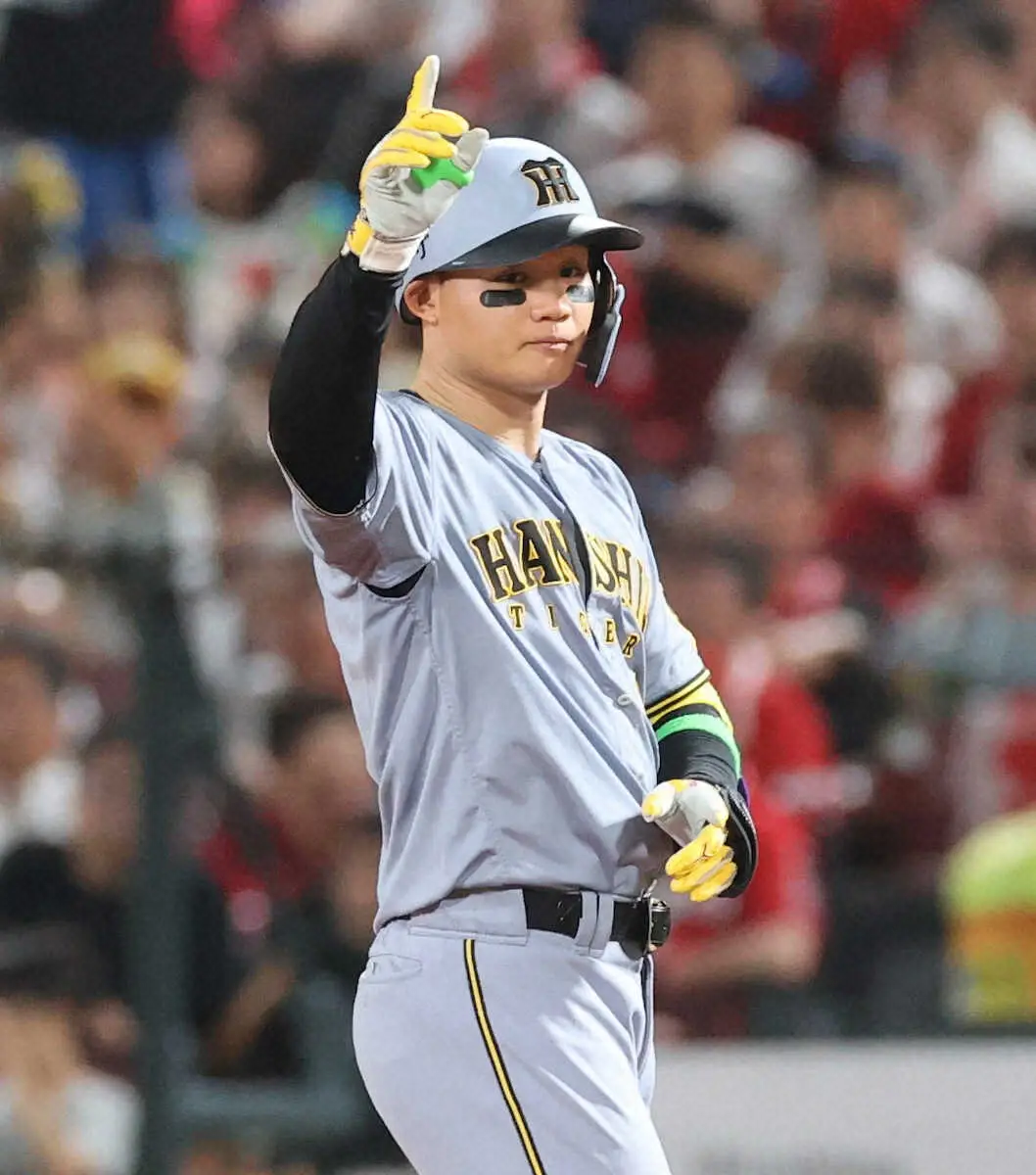 2死ながら近本を二塁に置き、迎えた第2打席目。床田の外角チェンジアップを上手く拾って中前への先制適時打とした。1打席目にも左翼線への二塁打を放ち、早くもマルチ安打を決めた。