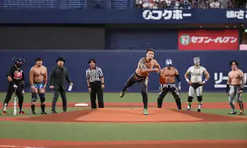 <オ・ロ>特別始球式の投手を巡り戦うゼウス(右3人目)ら大阪プロレス軍団(撮影・後藤 正志) Photo by スポニチ オリックス 大阪プロレスが特別始球式で大暴れ ゼウス「プロレスラーが… ギャラリーで見る この記事のフォト 2025年09月17日の画像一覧 もっと見る 2025年09月17日の画像をもっと見る