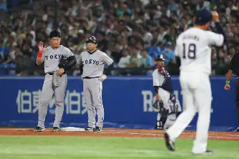 <ヤ・巨23>5回、岡本に詫びながらグラウンドを後にする奥川(右端)。岡本も応える=撮影・白鳥 佳樹 Photo by スポニチ 巨人・岡本 頭部死球を受けヤクルト・奥川をにらみつける 神宮騒然 奥… ギャラリーで見る この記事のフォト 2025年09月17日の画像一覧 もっと見る 2025年09月17日の画像をもっと見る