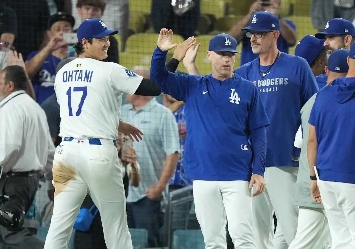 「ベンチで私と翔平が続けている試合前の儀式なんだ。バスケのシュートのように見えるかもしれないが、実際はジャンプして拳を合わせるフィストバンプ。特別な意味はなく、私と翔平の間のお決まりの動作だ。あいさつであり、連帯感でもあり、励ましのジェスチャーでもある。シーズンの初めから毎試合続けてきた。翔平はドジャース2年目の今季も素晴らしいプレーでけん引してくれている。“何でも屋コーチ”との連携、そして翔平とのフィストバンプ。この2つを力に変えて、連覇を達成したいと思っている」