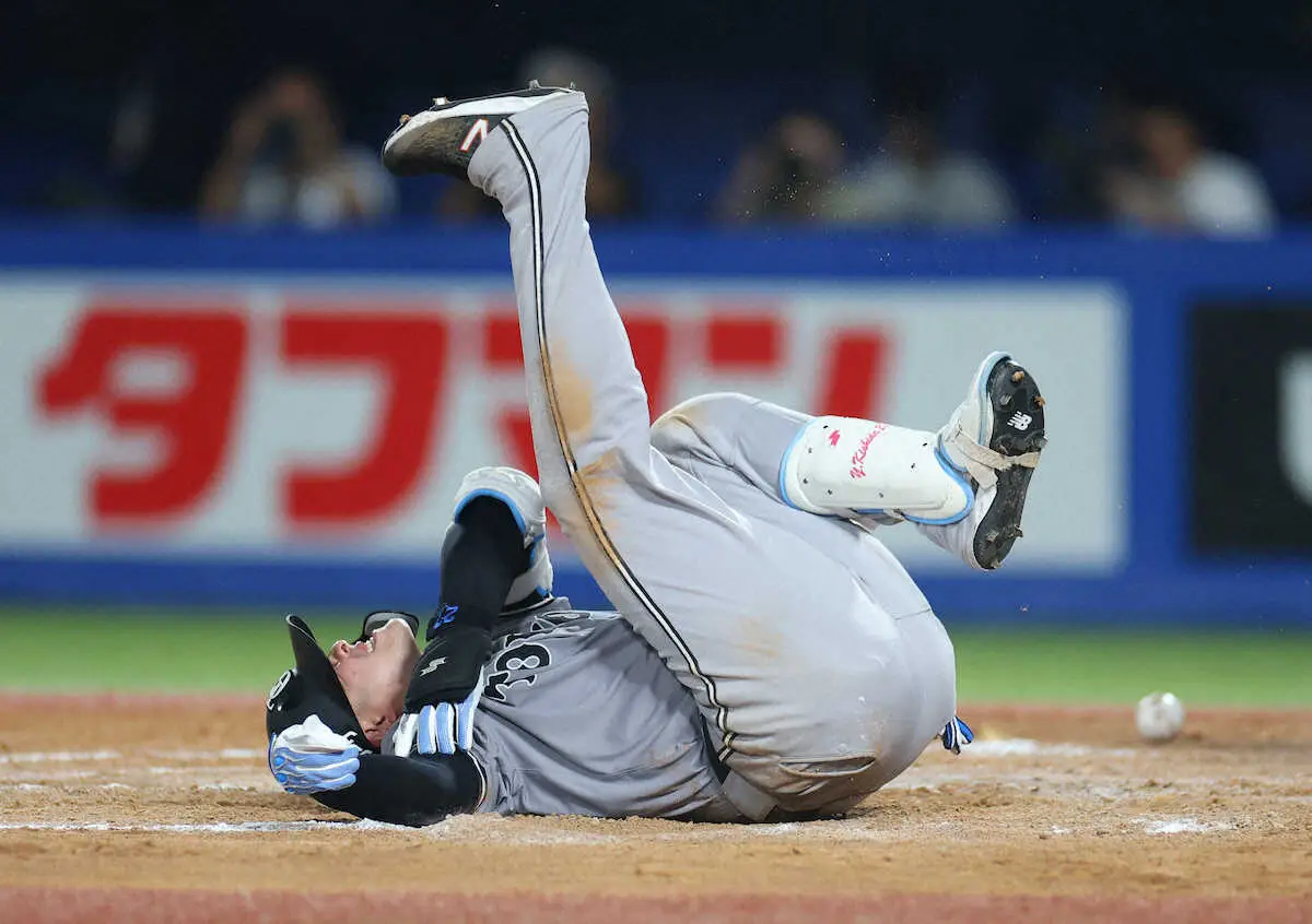 岸田は右肩付近をおさえて倒れ込むと、足をジタバタさせて痛みのあまりもん絶。その後何とか立ち上がり自らの足で歩いてベンチに下がったが、代走・小林が告げられた。