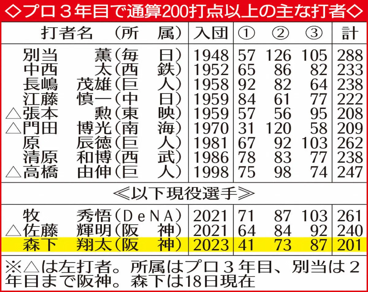 <広・神>3回、森下は左越えに先制の2ランを放つ(撮影・北條 貴史) Photo by スポニチ 阪神・森下翔太、決勝弾で通算200打点超え!3年目到達は長嶋、清原らが名… ギャラリーで見る この記事のフォト 2025年09月18日の画像一覧 もっと見る 2025年09月18日の画像をもっと見る
