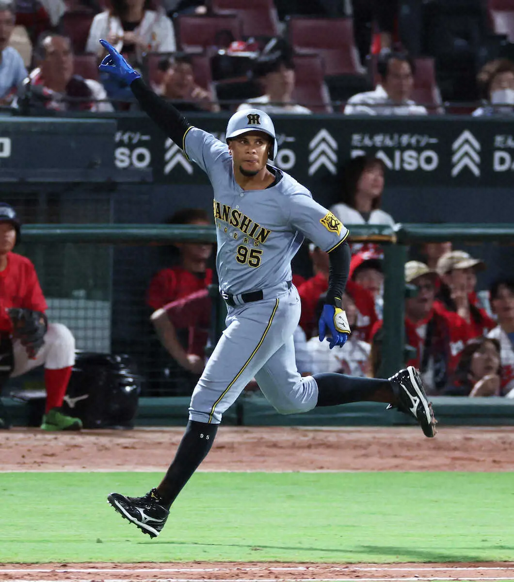 巡ってきたチャンスを一振りでモノにした。佐藤輝の代役としてこの日昇格し、三塁で先発出場した阪神・ヘルナンデスが、待望の今季1号。自慢のパワーをようやく見せつけた。