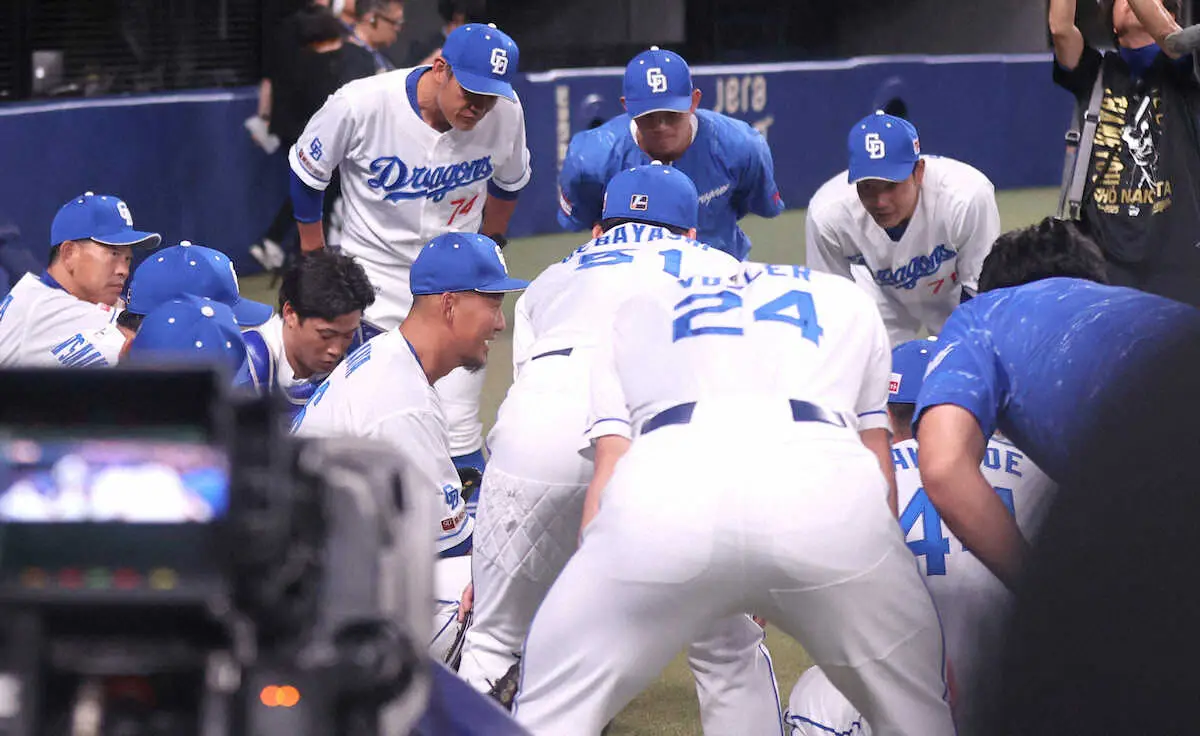 <中・ヤ>引退する中田へ多くのチーム関係者から花が送られる(撮影・椎名 航)
