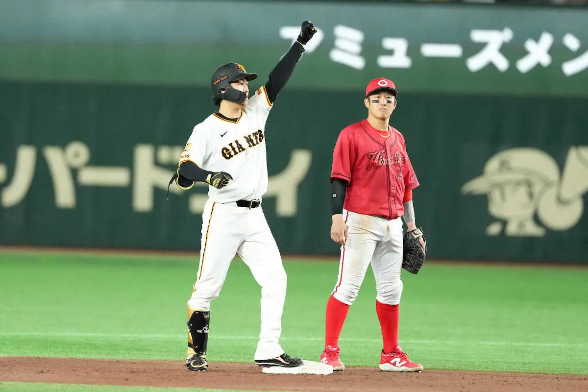 <巨・広23>4回、適時二塁打を放つ山崎(撮影・西尾 大助) Photo by スポニチ G党「伊織、伊織」の大合唱! 巨人・山崎伊織が自ら勝ち越し二塁打を放つ… ギャラリーで見る この記事のフォト 2025年09月19日の画像一覧 もっと見る 2025年09月19日の画像をもっと見る