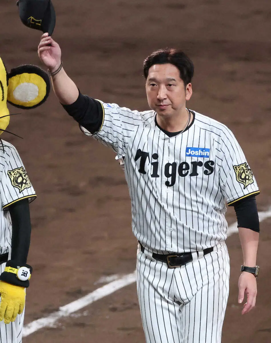 <神・D23> ファンにあいさつする藤川監督(撮影・中辻 颯太)