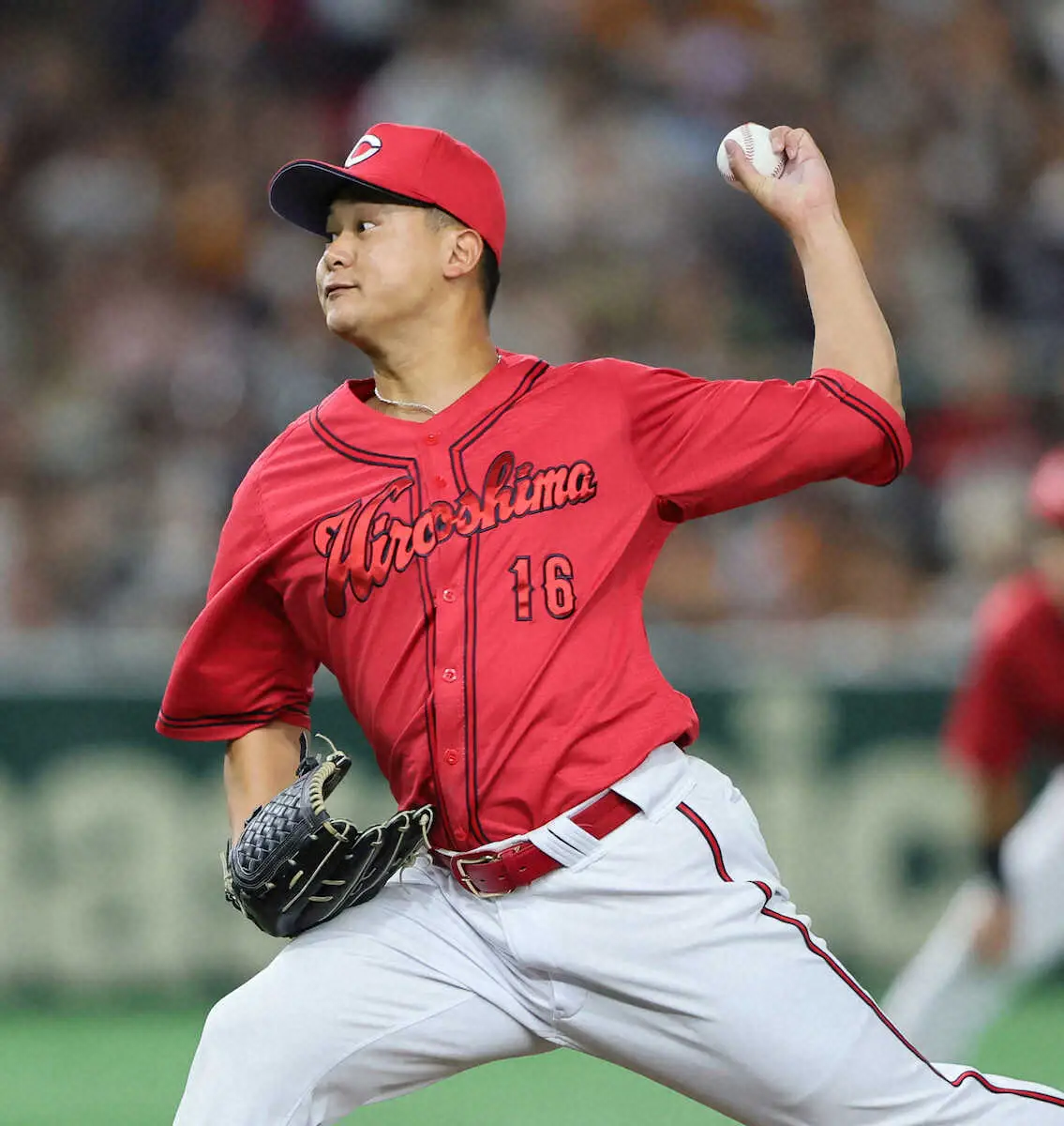 広島の先発・森が粘れなかった。中村奨のソロで同点に追いついた直後の4回にキャベッジ、泉口の連打から2死満塁のピンチを招くと、リチャードに痛恨の押し出し死球。なおも2死満塁で浦田に中前適時打を浴びた。5回3失点で7敗目(7勝)を喫し「(4回は)何とかゼロで抑えないといけなかった」と猛省した。