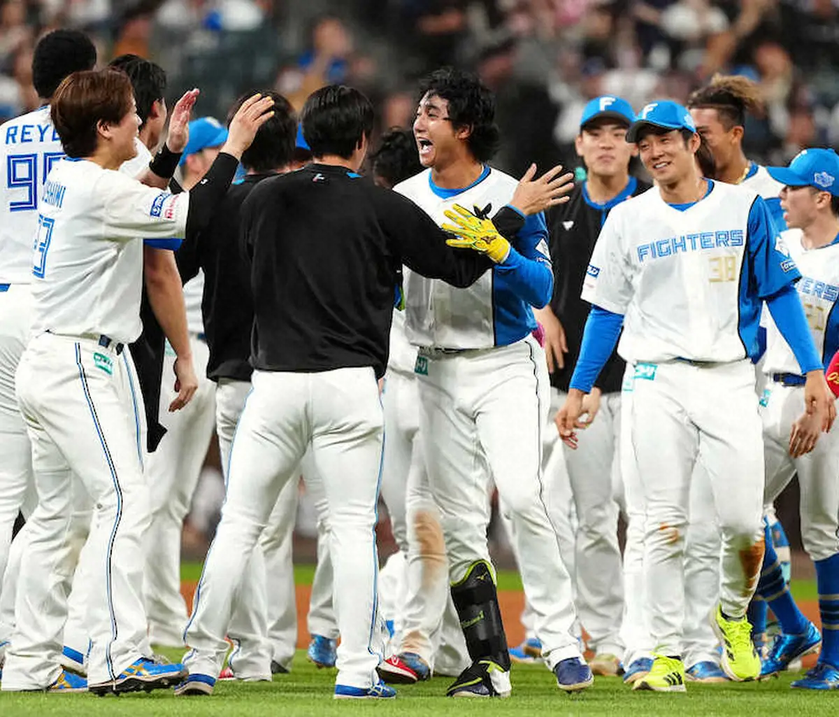 昨年のロッテとのCSファーストS第2戦でもサヨナラ打を放った勝負強さを発揮。「勝つことが何よりも大事。また明日(21日)につながる」と胸を張り、新庄監督は「実力のある子。よく決めてくれた」と称えた。首位・ソフトバンクが敗れ、3・5ゲーム差に接近。逆転Vへ、指揮官は「相手どうこうじゃない。勝つしかないから。何が起こるか分からない」と語気を強めた。 (田中 健人)