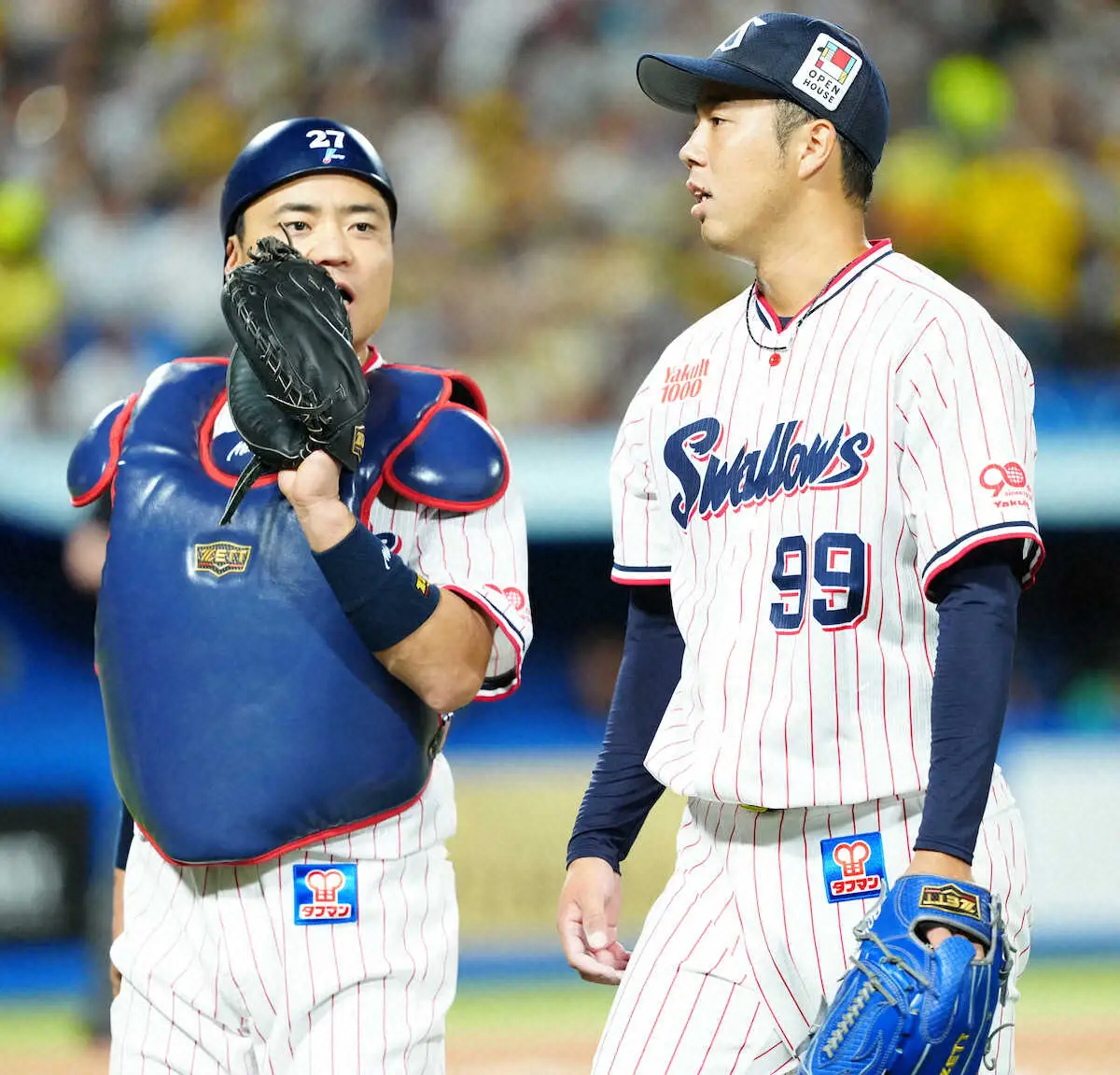<ヤ・神>4回、前川(左)に適時二塁打を打たれた青柳(撮影・尾崎 有希) Photo by スポニチ ヤクルト青柳晃洋 本拠デビューは5回83球4安打3四死球2失点 古巣・阪神… ギャラリーで見る この記事のフォト 2025年09月22日の画像一覧 もっと見る 2025年09月22日の画像をもっと見る
