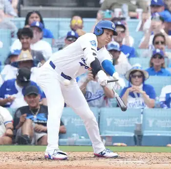 ドジャースの大谷翔平投手(31)が21日(日本時間22日)、本拠でのジャイアンツ戦に「1番・DH」で先発出場。第3打席でバットを折られながら右前打を放ち、今季4度目の9試合連続安打、今季最長を更新する26試合連続出塁としたが、ナ・リーグ西地区首位のチームは課題の救援陣が崩れて逆転負け。今季本拠最終戦で球団史上初の観客動員400万人超えを果たしたが、ファンに勝利を届けられなかった。