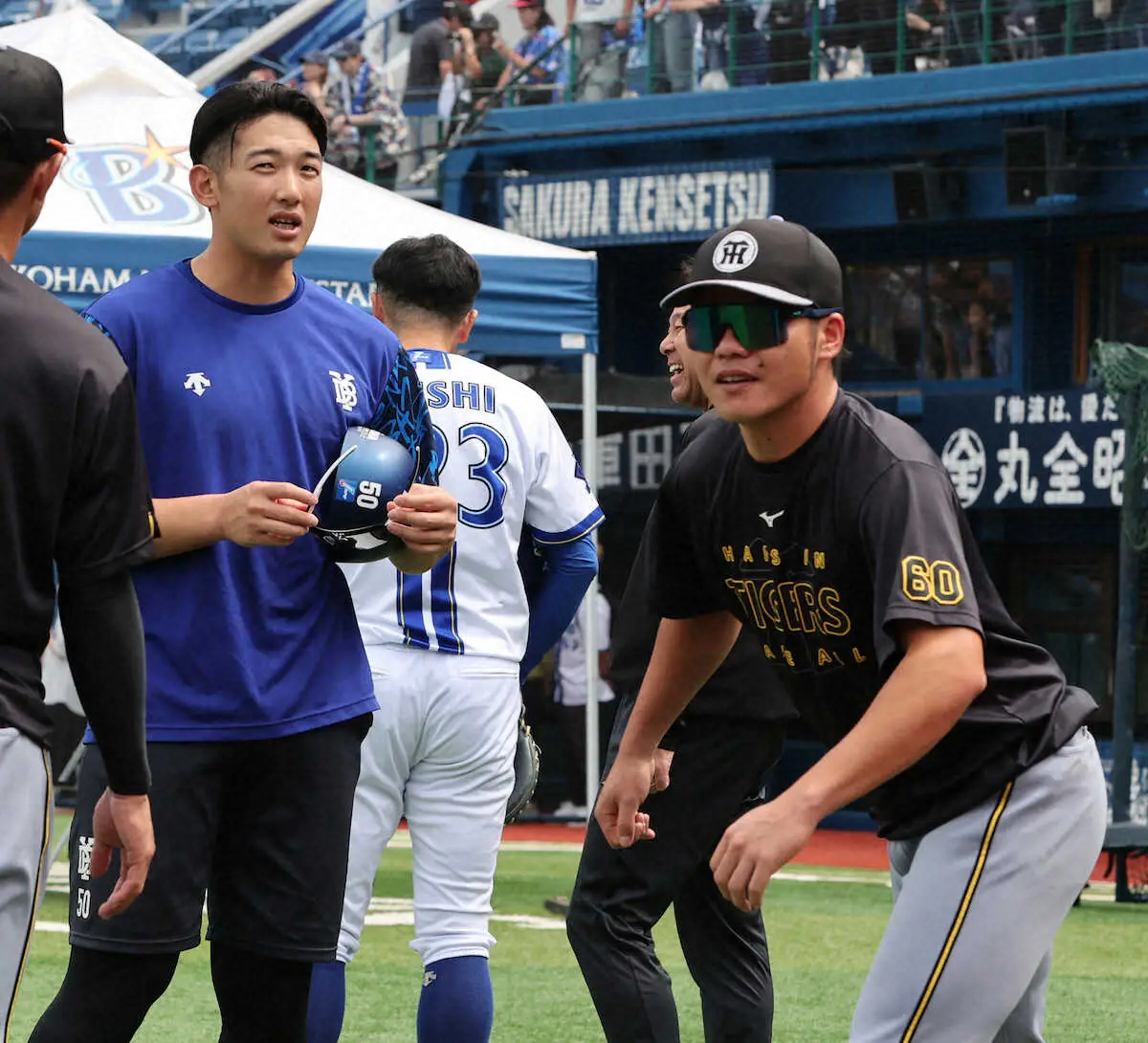 阪神の小野寺が23日のDeNA戦を前に、京都翔英高の1学年後輩、相手捕手の山本と旧交を温めた。