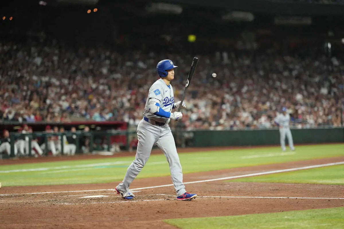 ドジャースの大谷翔平投手(31)が23日(日本時間24日)、敵地でのダイヤモンドバックス戦に「1番・投手兼DH」で先発出場。2打席凡退して迎えた第3打席は四球を選び、今季最長を更新する27試合連続出塁とした。