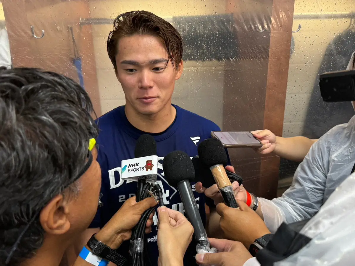 この日は6回まで相手打線を散発4安打に封じ、無失点。大谷の54号など大量援護にも守られ12勝目を挙げ、優勝がかかった大一番でエースの仕事を果たした。試合後は地区優勝を記念するTシャツに着替えて仲間と喜びを分かち合った。