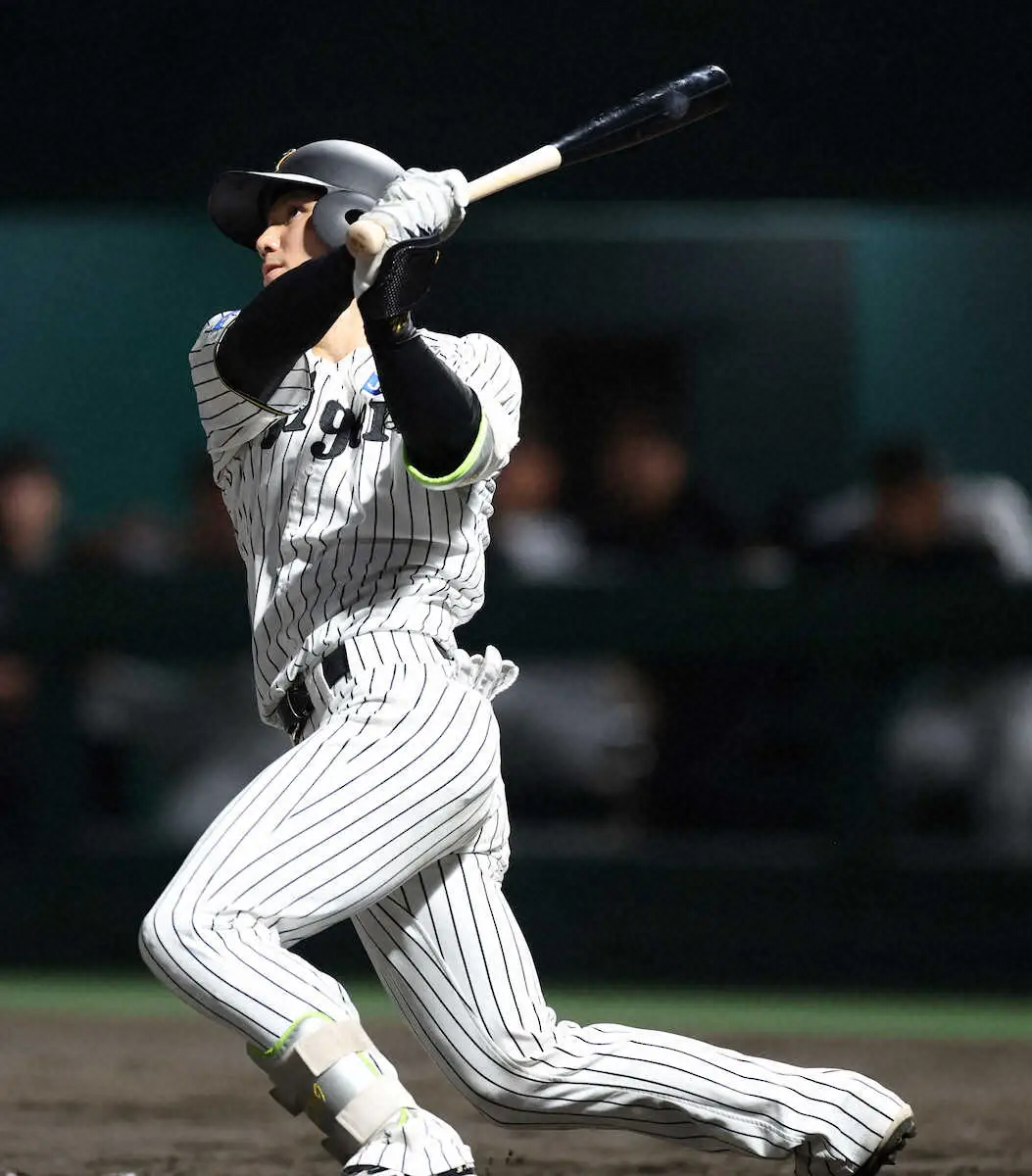 0―0で迎えた5回2死一、二塁。オリックス・芦田が投じた、142キロの高め直球を完ぺきに捉え、左中間への一発を放った。