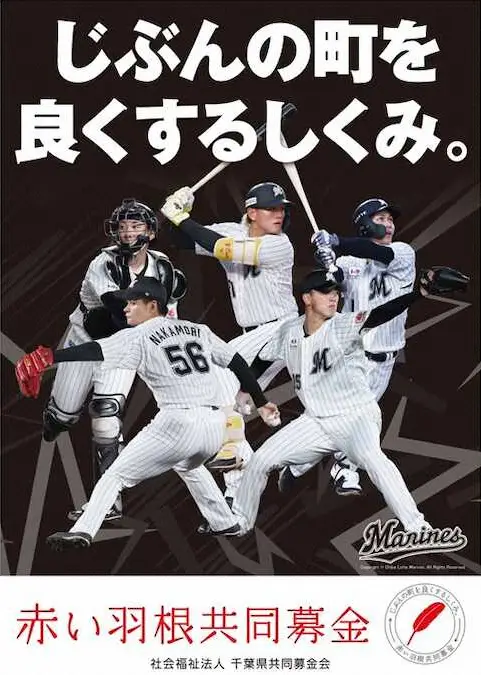 ポスターに起用されたのは田中晴也投手、中森俊介投手、寺地隆成捕手、藤原恭大外野手、山本大斗外野手の5選手で、赤い羽根共同募金運動が実施される10月1日から2026年3月31日まで千葉市内の学校237校や千葉県内公共施設や商業施設、公共交通機関などで掲示される。