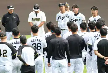 練習前、ナインの前であいさつする原口(撮影・後藤 大輝) Photo by スポニチ 阪神・原口が1軍練習合流 練習前の集合で全体にあいさつ ナインが大きな… ギャラリーで見る この記事のフォト 2025年09月30日の画像一覧 もっと見る 2025年09月30日の画像をもっと見る