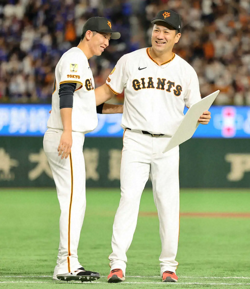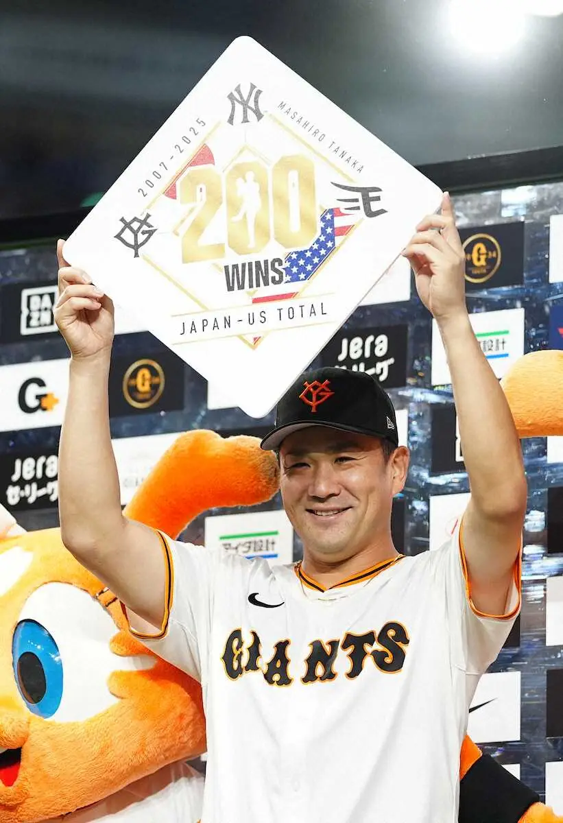 <巨・中24>200勝を達成のボードを田中将(左)に贈呈した戸郷(撮影・藤山 由理) Photo by スポニチ マー君が戸郷から受け取った記念ボードは「200WINS」の文字とヤンキース、… ギャラリーで見る この記事のフォト 2025年09月30日の画像一覧 もっと見る 2025年09月30日の画像をもっと見る