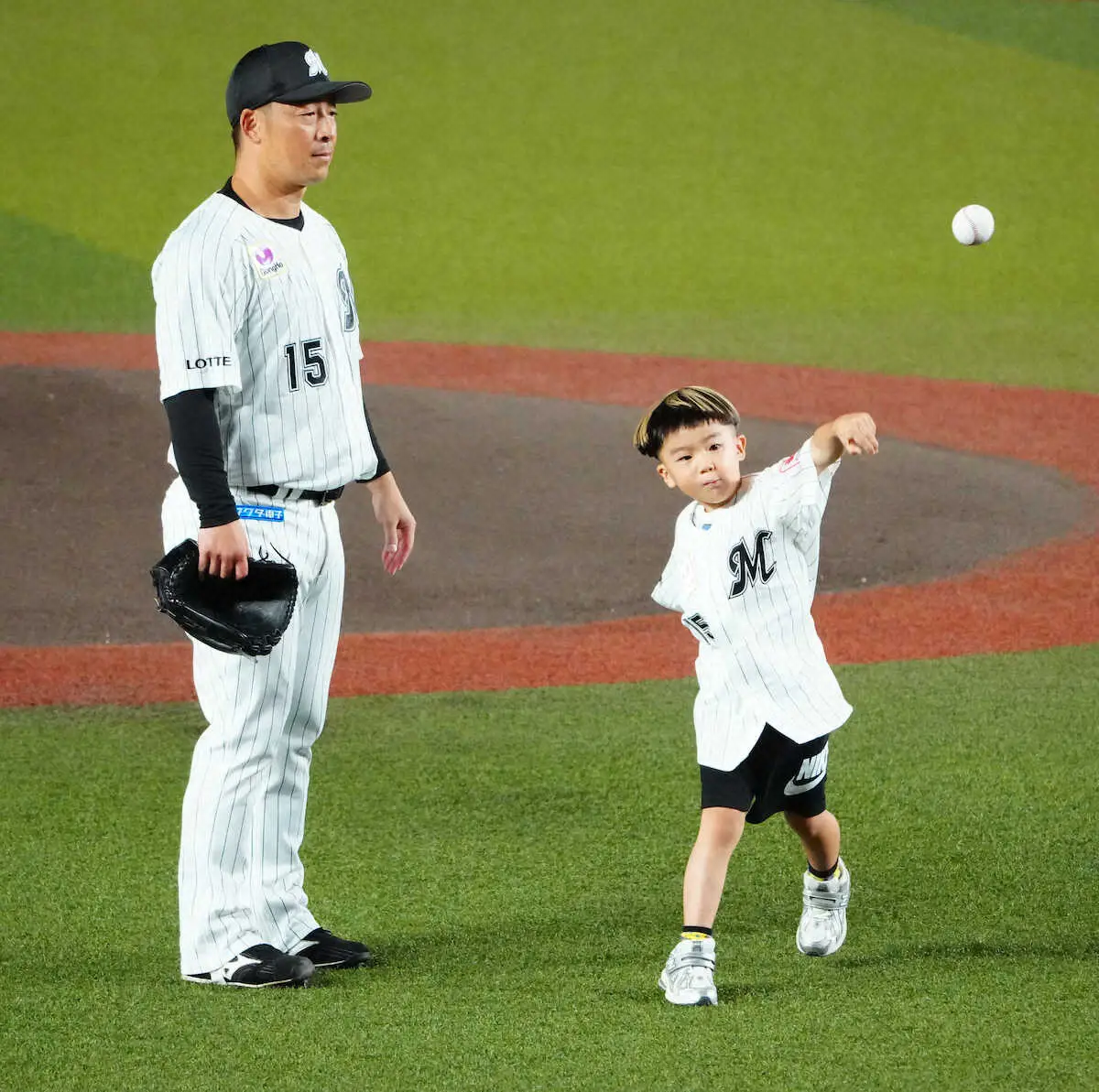 今季限りで現役を引退するロッテの美馬学(39)が、引退試合で古巣・楽天を相手に今季初の先発登板に臨む。試合前に長男のリタ君(5)が始球式を務め、パパのラスト登板に花を添えた。