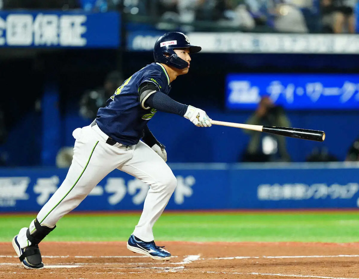 「8番・遊撃」で初のスタメン出場。0―3の2回1死満塁で、DeNA・バウアーの高めに浮いたカットボールを思い切り振り抜き、右翼線への2点二塁打を放った。
