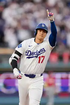 気になる光景があった。大谷は2本の本塁打の後、ベンチで最後に出迎えたロハスと、互いに顔の前で両手をぶらぶらさせながら舌を出す恒例のポーズ。愛犬デコピン(デコイ)がモチーフのこのポーズはよく知られているが、この日はその直後にベンチの中から少しだけ顔を伸ばし、2人で両手の人さし指で頭上を指していた。