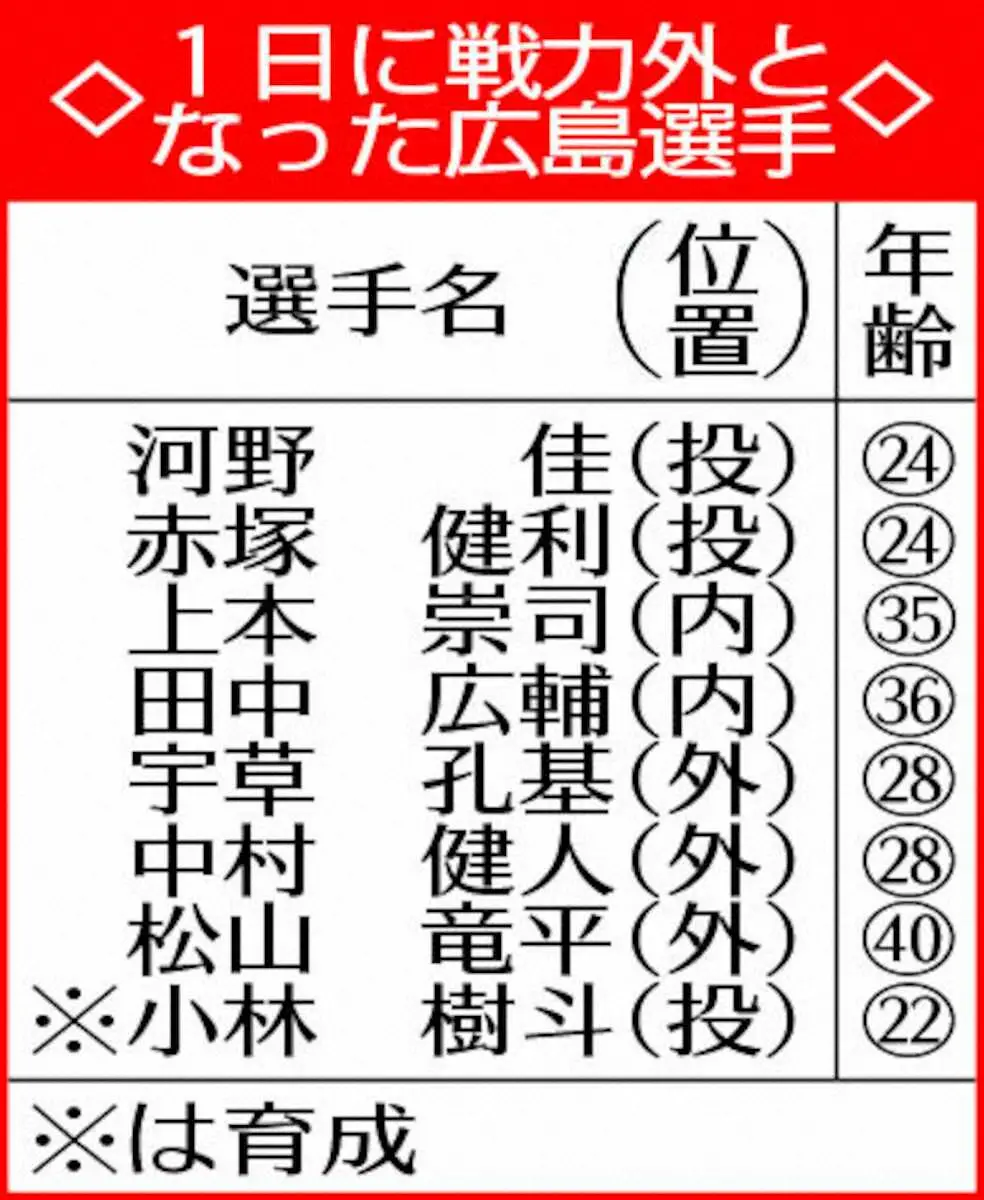 広島 田中広輔、松山竜平ら8人の戦力外発表 リーグ3連覇に貢献のベテラン2人は現役続行希望