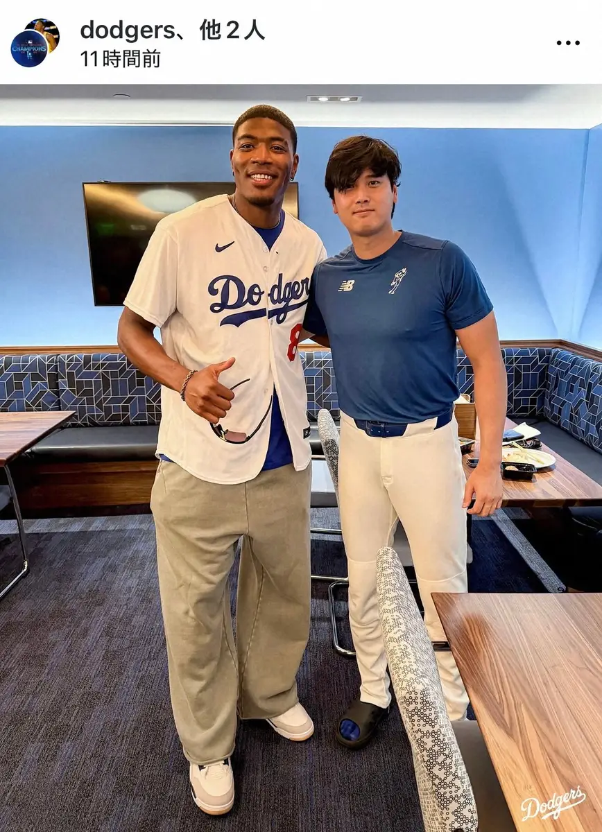 ドジャースの球団公式インスタグラムが更新され、大谷とNBAレーカーズの八村塁の2ショットが公開された。