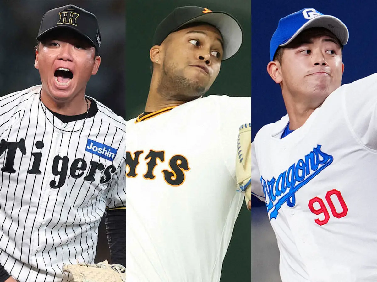 (左から)阪神・村上、巨人・マルティネス、中日・松山