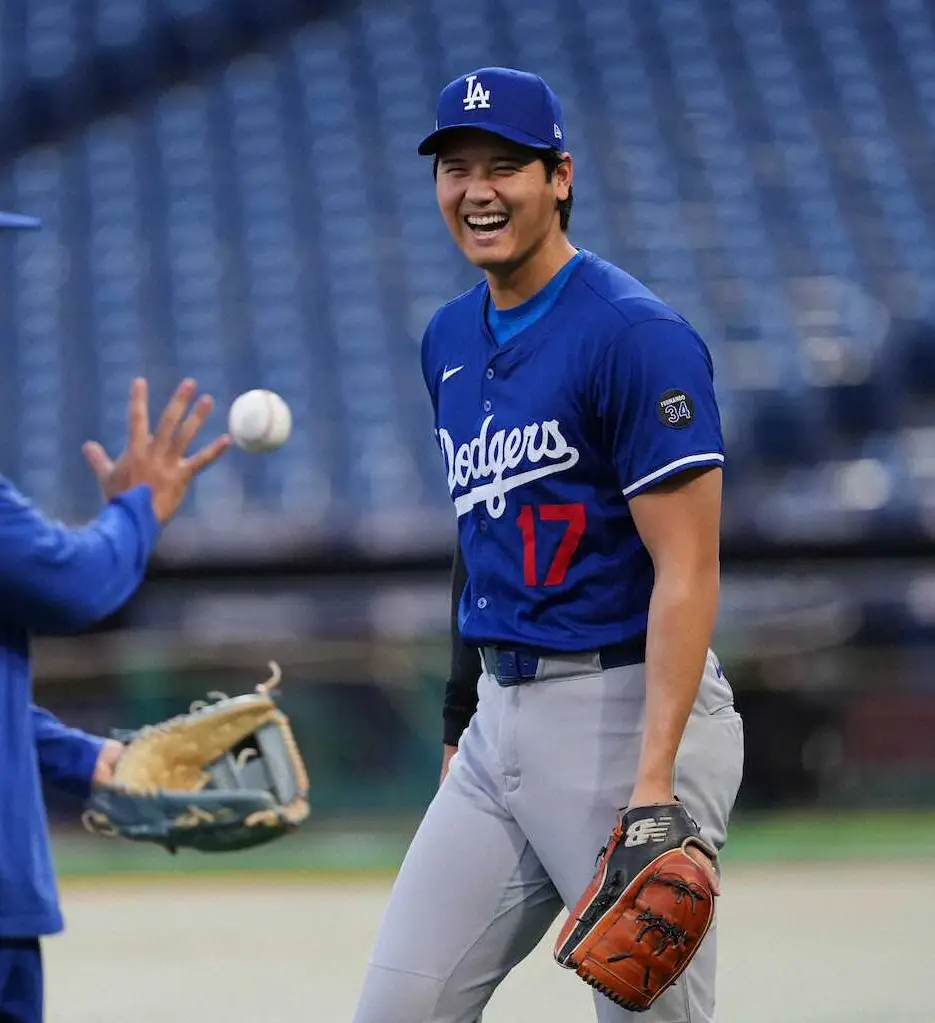 大谷は会見後にはグラウンド上でキャッチボールなどを行い、最終調整。シチズンズバンク・パークでは初登板になるため、キャッチボール後にはマウンドに上がり、シャドーピッチングを行って傾斜などを入念に確認した。その後は中堅付近で珍しく短距離ダッシュを3本行った。練習後にはベンチ前でデーブ・ロバーツ監督と冗談を言い合ったのか、2人で大爆笑してベンチ裏へ下がった。グラウンドでの練習は18分間だった。