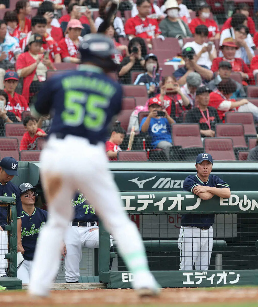 村上の国内ラストゲーム。ベンチから主砲の打席を目に焼き付けた。「彼もいろいろ思うことはあるだろうしね。気分よく今日のゲームを終えられたのかなと思いますね」とし、「彼にも期待しかないです」と期待を寄せた。