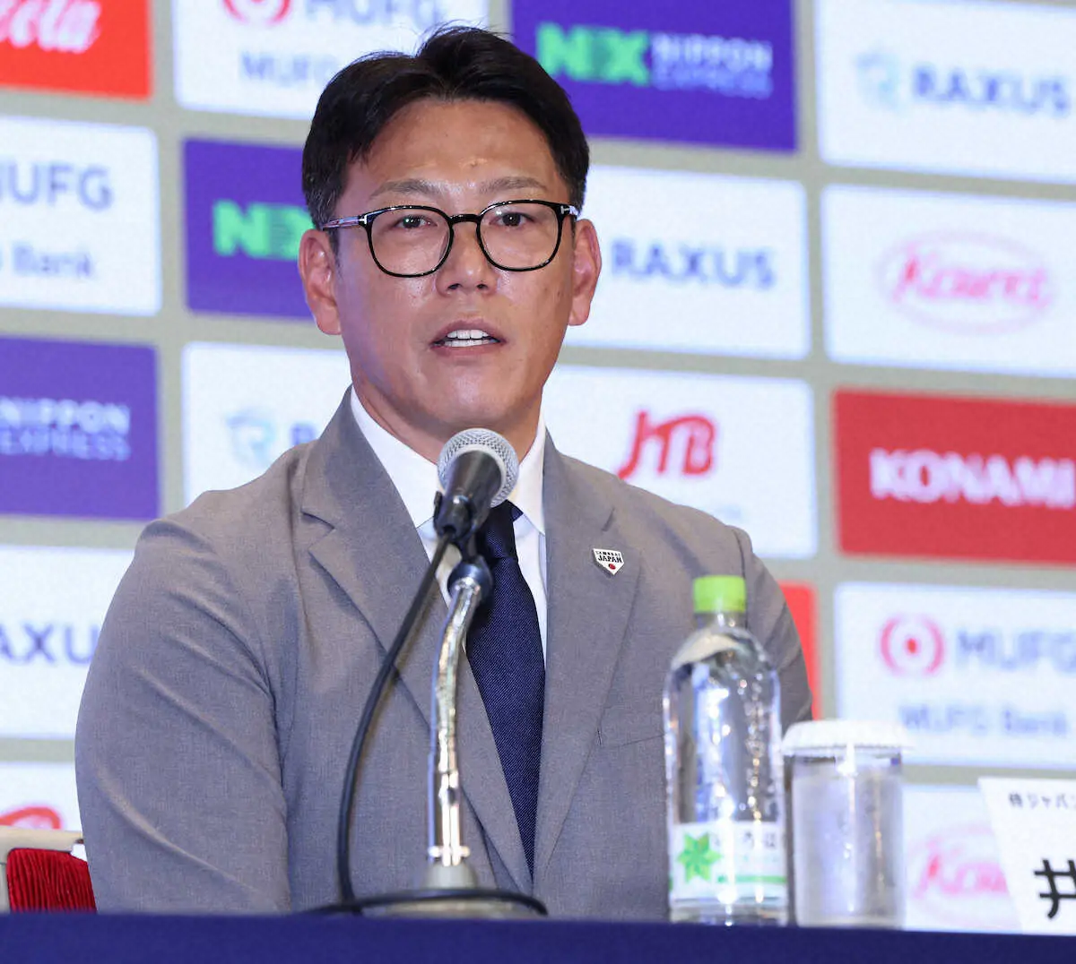 記者からの質問に応える井端監督(撮影・須田 麻祐子)