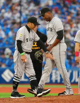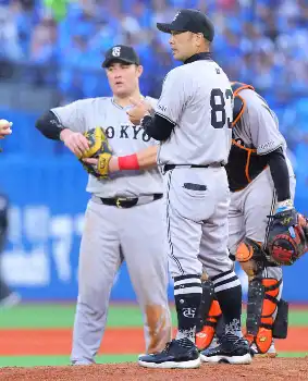 <D・巨>7回、バルドナードの交代を告げた阿部監督(撮影・光山 貴大)