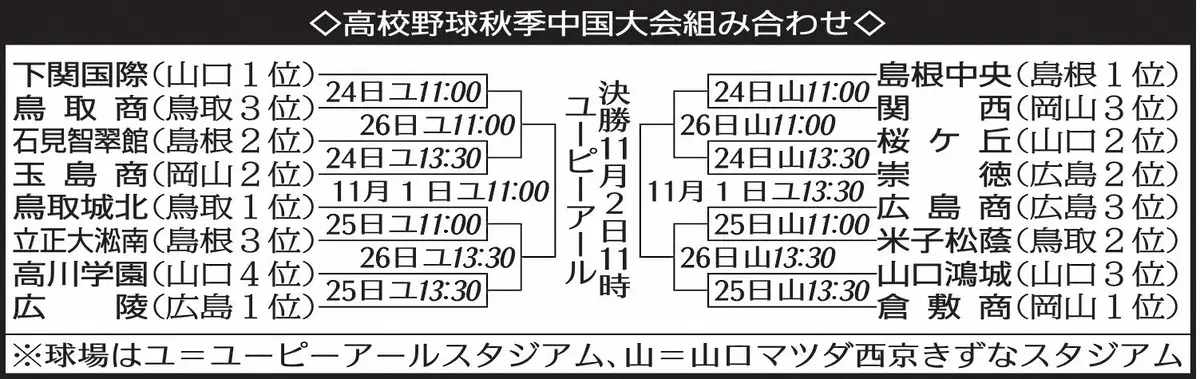 来春選抜の重要な選考資料となる高校野球の秋季中国大会の組み合わせが決まった。