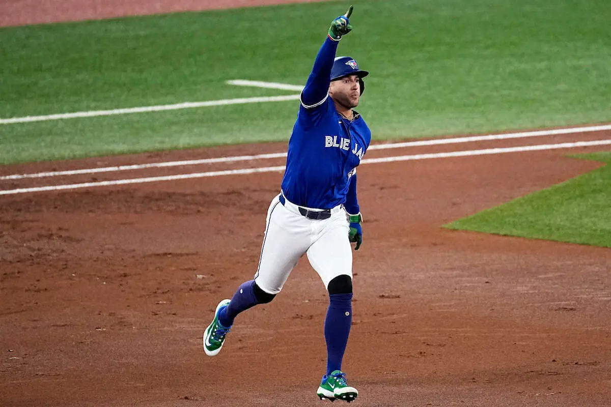 先頭弾を放ち、ダイヤモンドを一周するブルージェイズ・スプリンガー(AP)