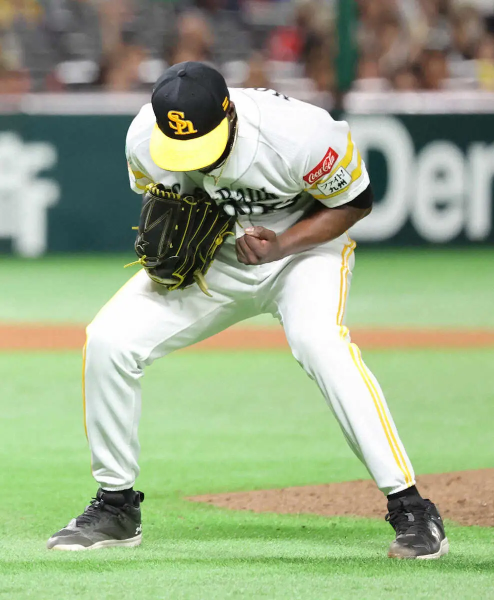 <ソ・日>7回、万波を見逃し三振とし、ガッツポーズのモイネロ(撮影・成瀬 徹)