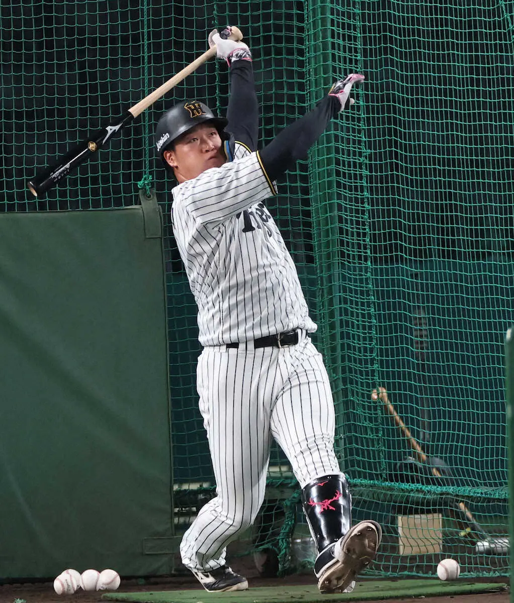 フリー打撃を行う阪神・大山(撮影・北條 貴史)