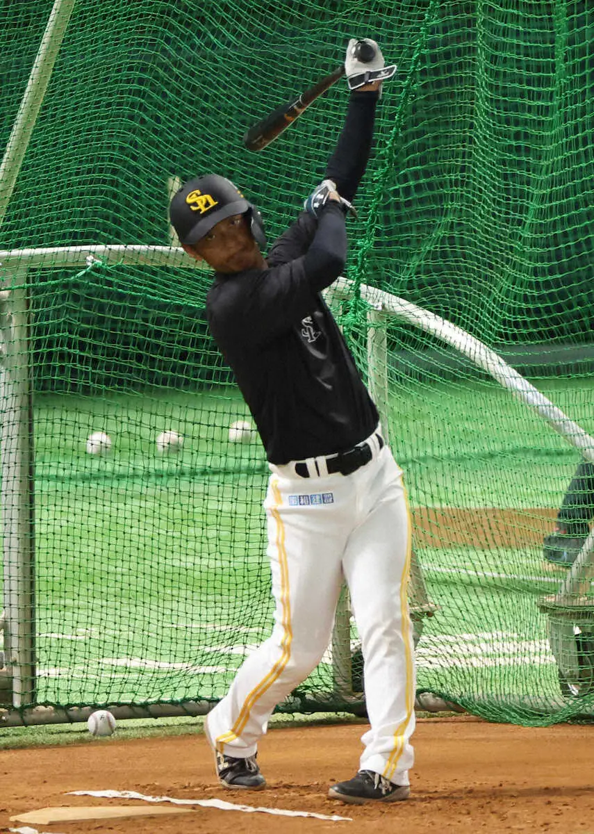フリー打撃に臨んだソフトバンクの今宮(撮影・成瀬 徹)