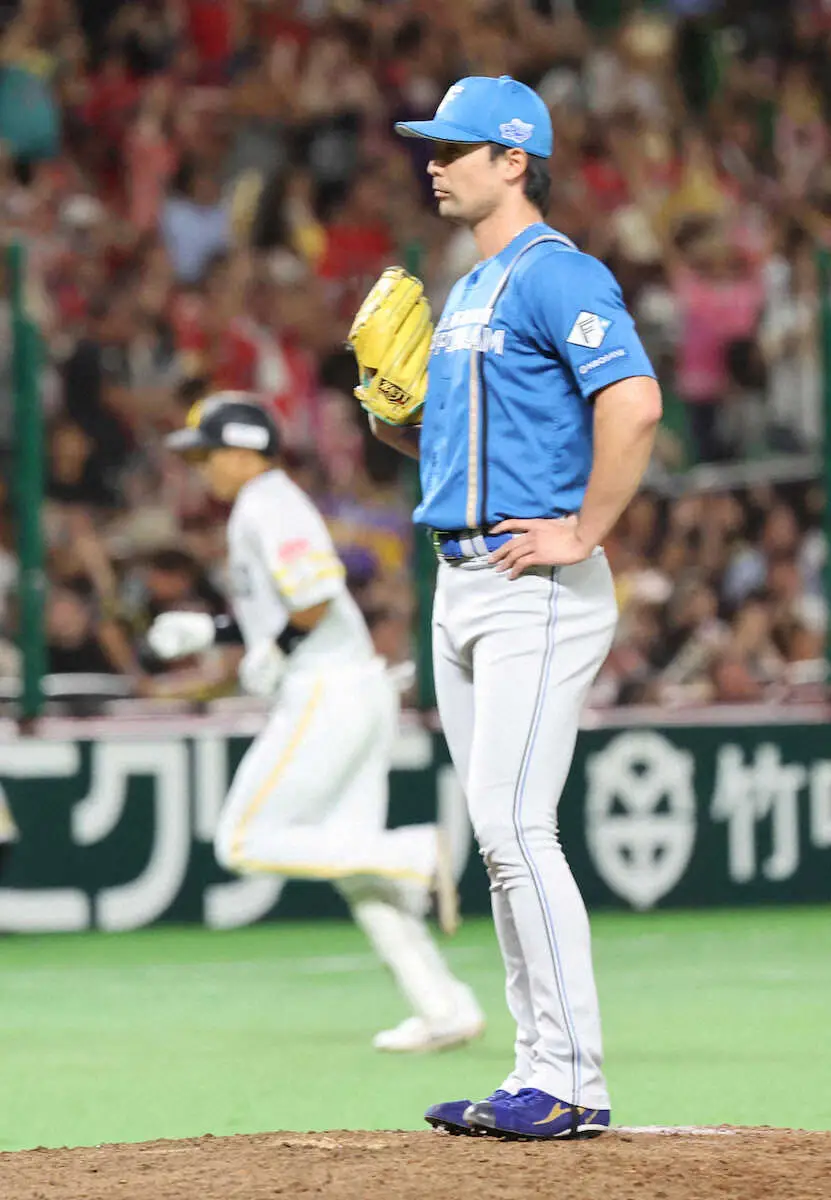 8回1死一、二塁からマウンドに上がった2番手・上原はカウント1-1からの3球目、150キロの直球を柳田に捉えられた。「意図のあるボールは投げたつもりなので…。凄いバッターなので、やられたなと」。自身の投球を振り返りつつ、肩を落とした。