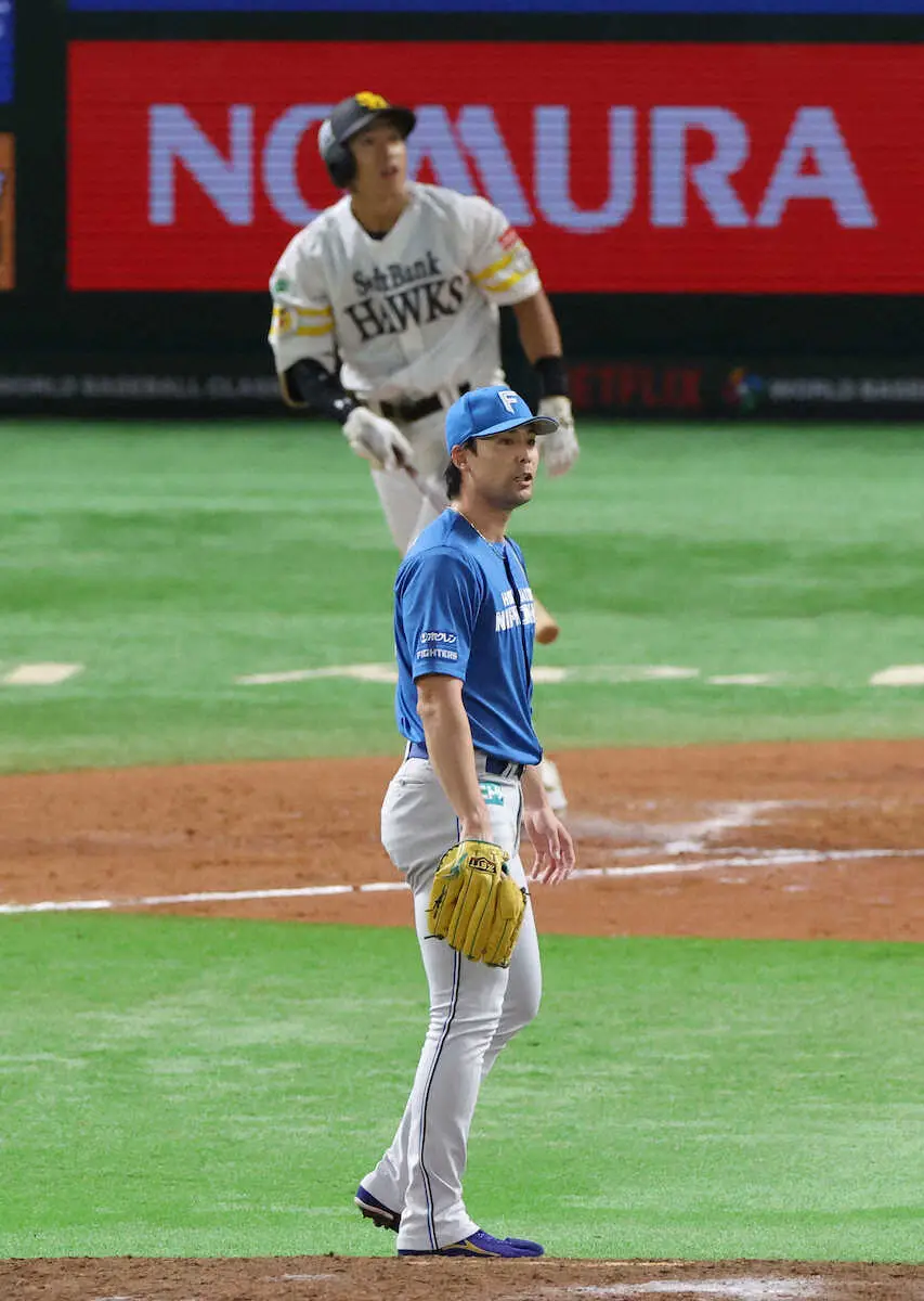 <ソ・日>8回1死一、二塁、打者・柳田で先発・福島は降板(撮影・長久保 豊) Photo by スポニチ 日本ハム 福島蓮がっくり…CS初先発で圧巻10Kも2番手・上原が痛恨3ラン被弾 ギャラリーで見る この記事のフォト 2025年10月16日の画像一覧 もっと見る 2025年10月16日の画像をもっと見る