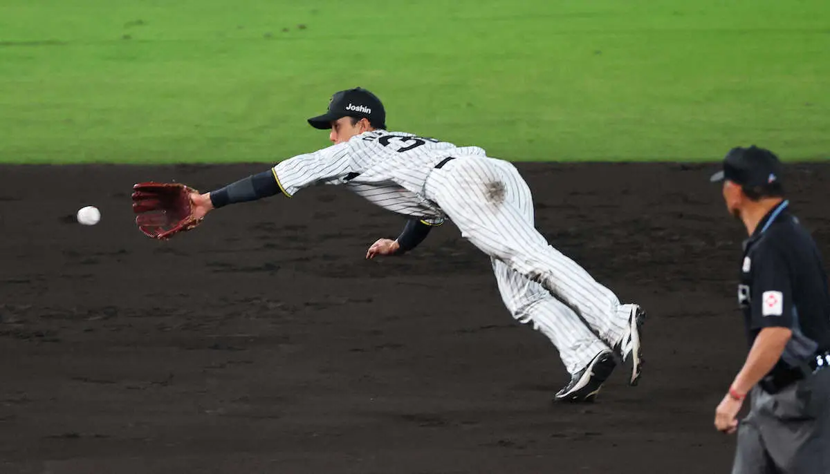 阪神・小幡竜平 超美技でピンチ救った! 4回痛烈ライナーを横っ飛び 「結果的に良かったかな」