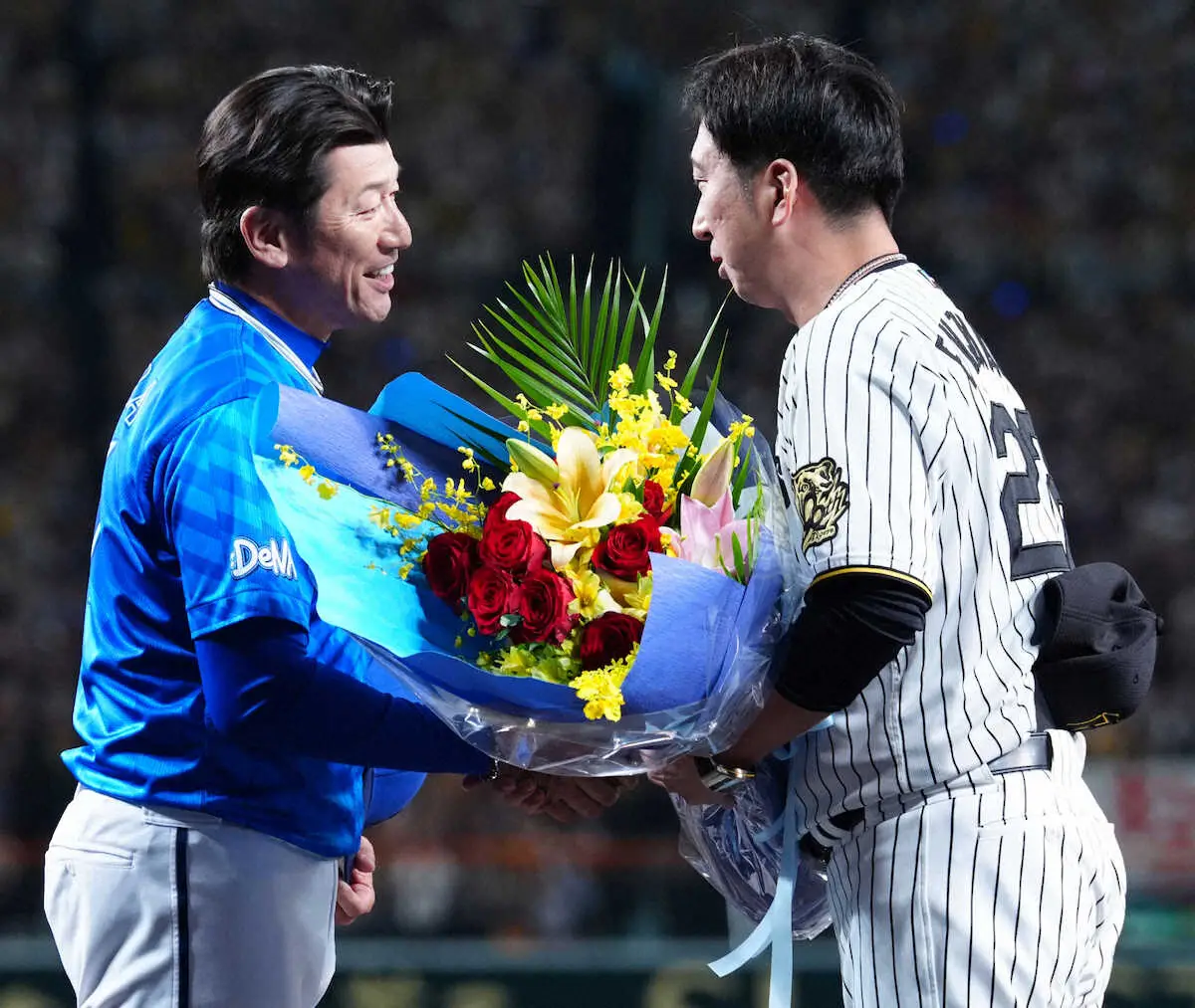 DeNA・三浦監督 両軍ファンから「三浦コール」に涙 阪神・藤川監督からはサプライズの花束