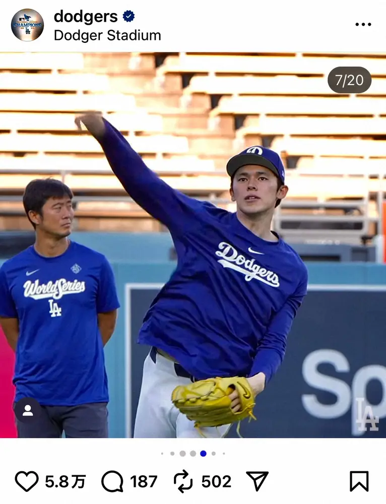 ドジャースの球団公式インスタグラム(@dodgers)から ドジャース「ワールドシリーズ」Tシャツで練習再開!佐々木朗希はキャッチ… ギャラリーで見る この記事のフォト 2025年10月20日の画像一覧 もっと見る 2025年10月20日の画像をもっと見る