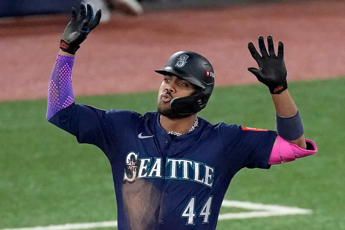 マリナーズのフリオ・ロドリゲス外野手(24)が20日(日本時間21日)、敵地でのブルージェイズとのア・リーグ優勝決定シリーズ(ALCS)第7戦に「1番・中堅」で先発出場。3回に今ポストシーズン4号となる勝ち越し弾を放った。