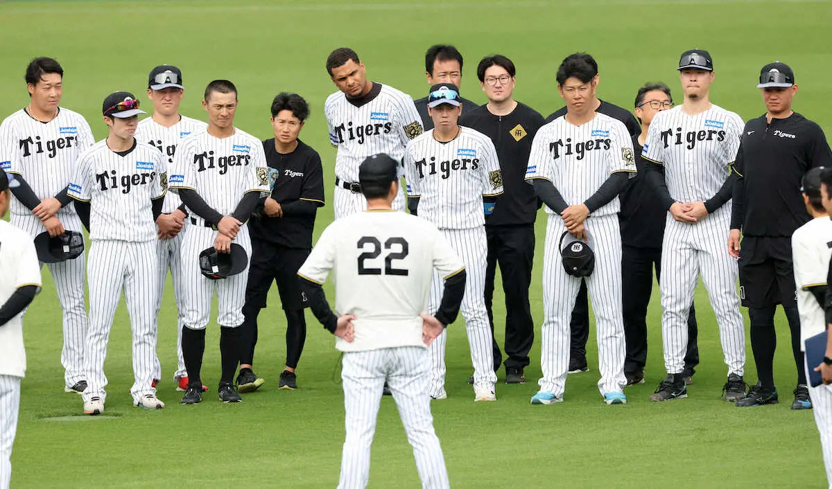 練習前には藤川監督が投手、野手全員を集めた円陣で訓示。「あと4つ勝つ」と日本シリーズ出場決定を受けてファンに約束していただけに、チームとして勝つ準備を進める動きをスタートさせた。