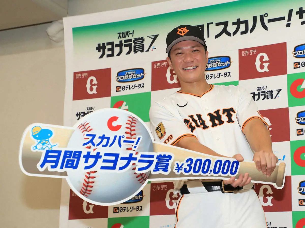9、10月度の「スカパー!サヨナラ賞」の受賞者が22日に発表され、巨人の坂本勇人内野手(36)が選出され「選んでいただいて、普段の練習頑張って良かったなと思います」と喜びを語った。