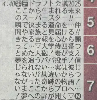 TBS生中継「ドラフト会議2025」 今年もテレビ欄に粋な隠れメッセージ! さあ、運命の一日が始まる