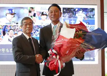 中日 井上一樹監督が速攻でドラ1・中西聖輝投手に指名あいさつ 「やっちゃう?」と満面の笑顔で握手