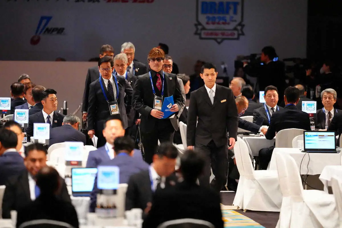 1位指名の立石で競合し、クジを引く(左から)新井監督、新庄監督、藤川監督(撮影・西海健太郎) Photo by スポニチ 日本ハム新庄監督 クジは空けずに左胸に当てたまま…1位指名競合、創価大… ギャラリーで見る この記事のフォト 2025年10月23日の画像一覧 もっと見る 2025年10月23日の画像をもっと見る