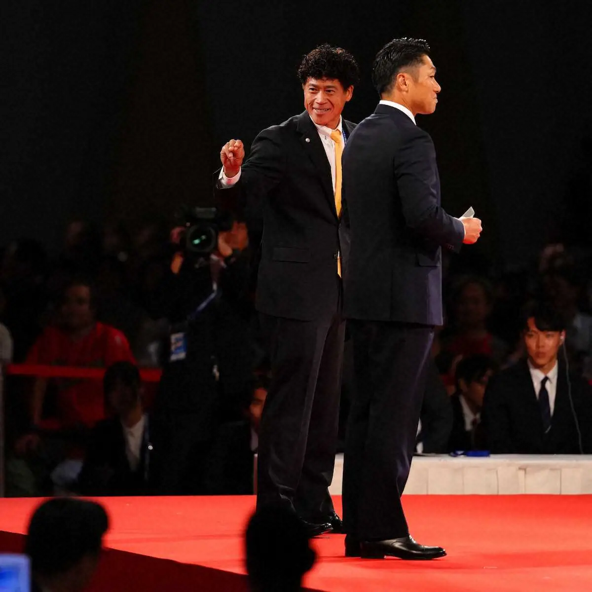 <ドラフト会議>ドラフト会議に臨む(左から)DeNAの相川新監督、ソフトバンク・城島CBO(撮影・西海 健太郎) Photo by スポニチ DeNA・相川新監督 佐々木麟太郎の指名決定は当日だった「今日集まって…」… ギャラリーで見る この記事のフォト 2025年10月23日の画像一覧 もっと見る 2025年10月23日の画像をもっと見る