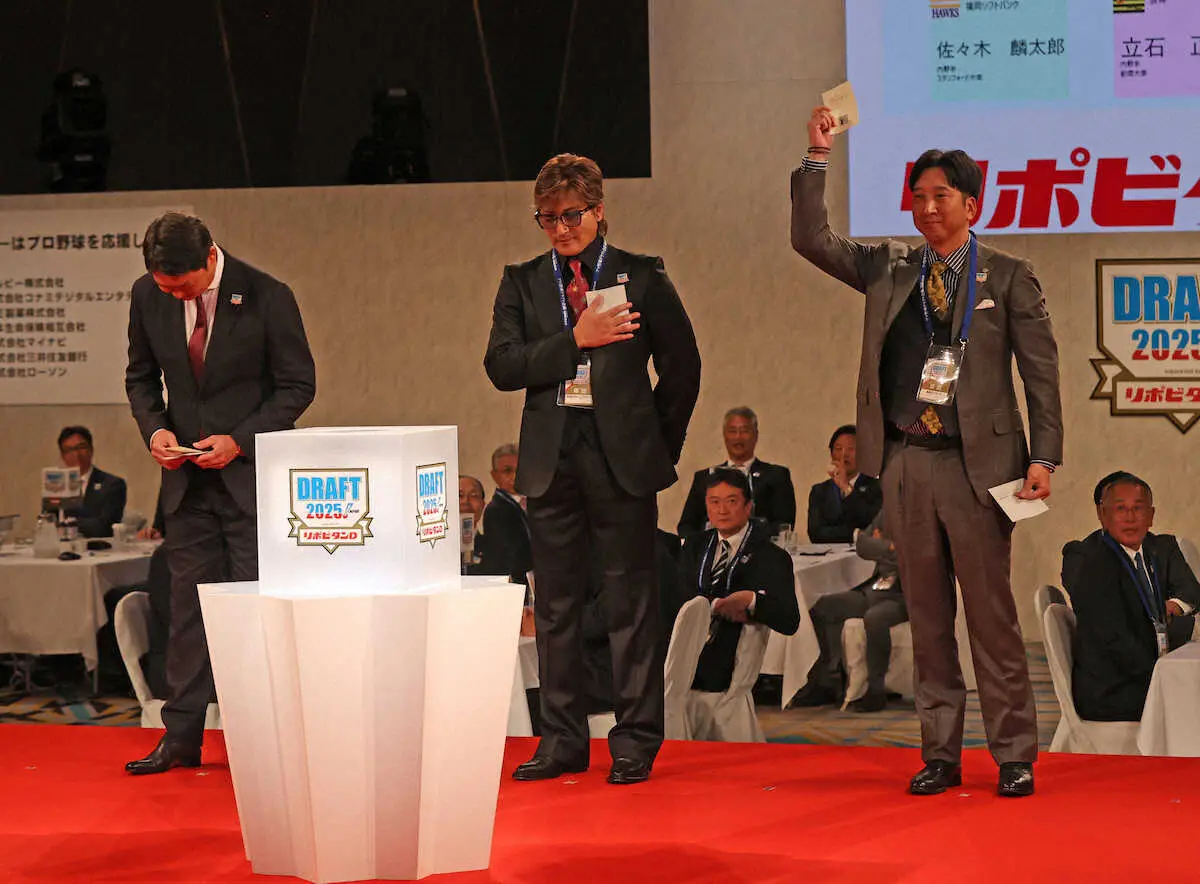 外れ1位の仙台大・平川でも広島と競合。クジを引けず最終的に明大・大川慈英投手との交渉権を獲得した。